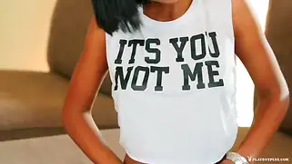 Порно видео Молодые, - Красивая кокетливая мулатка с молодой свежей фигуркой раздевается перед публикой и начинает позировать на кроватке, показывая идеальную задницу на камеру