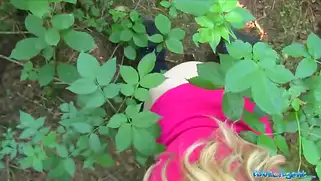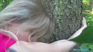 Отвез блондинку в лес, поставил раком к дереву и кончил на жопу
