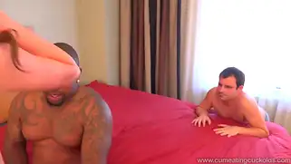 Нерешительный мужик смотрит, как его телочку дрючит здоровый негр