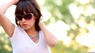 Порно видео Молодые, - Молодая сучка с классными сиськами и симпатичным личиком снимает солнцезащитные очки и ложится пизденкой к камере, девушка разводит пальцами половые губы