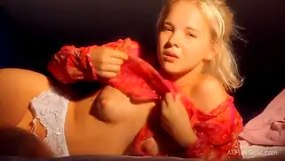 Порно видео Мастурбация, Блондинка в очках - Русская блондинка хрупкого сложения Катя Рысь подрочила киску в ажурных белых чулочках, телочка для начала показала сиськи, а затем начала мастурбировать
