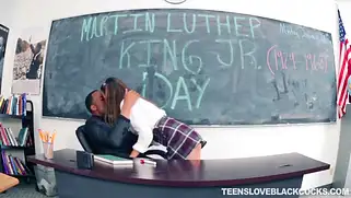 Порно видео Межрассовое, Молодая - Молодая симпатичная студентка мечтает о черном члене и получает огромный хуй в рот, негр преподаватель трахает сучку на столе и доводит девушку до оргазма