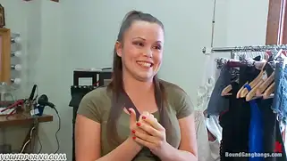 Хрупкую деву жестко ебут толпой, доводя до оргазма несколькими хуями
