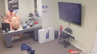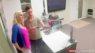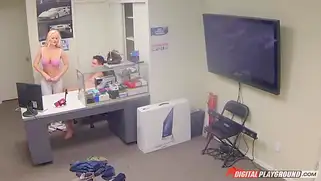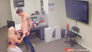 Шлюшка Алёна Крофт трахается с продавцом в магазине электроники