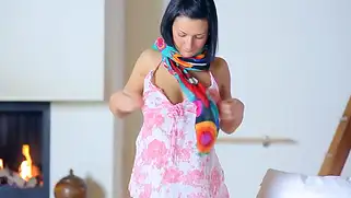 Порно видео Мастурбация, - Жгучая брюнетка с большими сексуальными буферами частично обнажается перед мастурбацией, в руках девушки самотык, который мягко входит во влажную киску