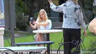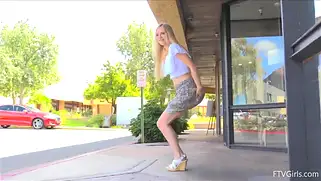 Порно видео Молодые, Девушка писает - Взбалмошная молодая блондинка проводит полуголое селфи у себя в городе, девушка пытается писать на лужайке, а затем идет по дороге и обнажает части тела
