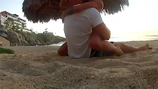 Быстрый пляжный секс похабной парочки заснят на любительское порно видео