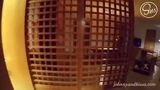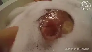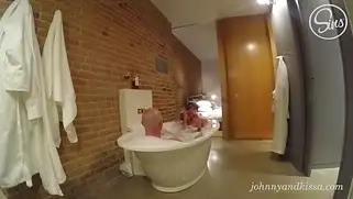 Johnny Sins - Пара порно актеров сняла большой номер в Монреале, лысый мужик предложил побухать в ванне, сучка уселась в воду и стала дрочить член мужика ногами, пока тот бухал