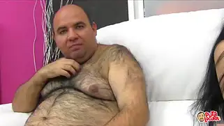 Носатая шлюшка глотает сперму, дрочит хуи и отсасывает мужикам
