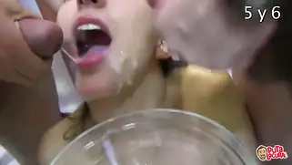 Порно видео В Сперме, Дрочит - Испанская шлюшка с большим носом глотает сперму нескольких мужиков. Парни окружают тёлочку со всех сторон и кончают на неё кто как может.