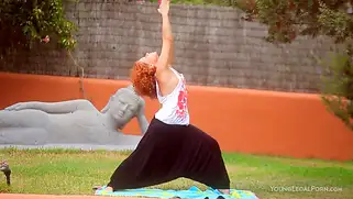 Порвал шортики во время занятия йогой, чтобы рыженькую трахнуть в писю