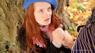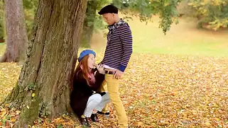 Порно видео Кунилингус, Молодая - Молодая баба с каштановыми волосами гуляет с парнем по осеннему парке, потом девушка сосет хуй под деревом, не снимая беретку, ебля проходит в доме на кровати