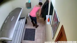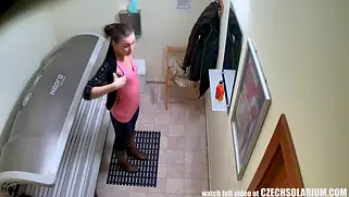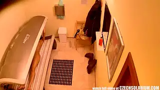 Скрытая камера в солярии, где клиентка дрочит киску загорая