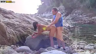 Встретил телочку на пляже и трахнул сисястую бабу на камнях