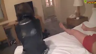 Полапал молодую японку в отеле и выебал её волосатую промежность