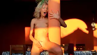 Порно видео Мастурбация, Русская дрочит - Тощая русская блондинка с карими глазами раздевается на открытой террасе, красотка начинает дрочить киску без одежды и кончает перед камерой крупным планом