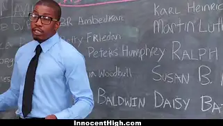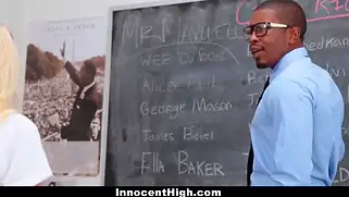 Большой чёрный член в ротик и в гладко выбритую пизду худой блонди