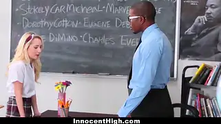 Порно видео Кунилингус, Негр и блондинка - Блондинка в юбочке запрыгивает на стол, и негр вылизывает ей киску. Спустя пару минут сучка уже во всю сосёт его чёрный хуй, а потом негр трахает молодую блондиночку.