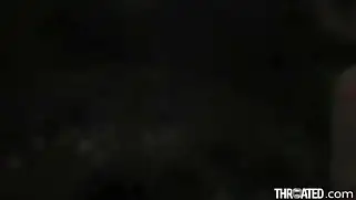 Гигантский чёрный член в ротик белой шлюшке, которая давится им