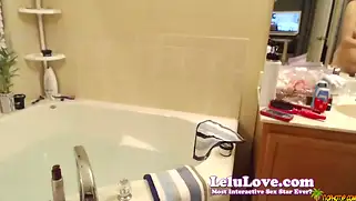 Голая Лелу Лав бреет пизду в ванной, мнет немного сиськи и дрочит