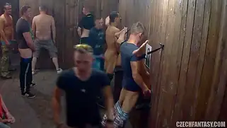 Дырки в стенах привлекают извращенную сучку, особенно если от туда члены торчат
