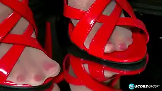 Порно видео Зрелые, - Зрелая красотка сняла красные туфельки и показала изящные стопы, сучка задрала ногу и стала облизывать один палец за другим, едва не кончая от удоволсьтвия