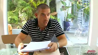 Гламурная секретарша в очках получает сперму на лицо после траха