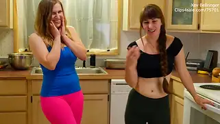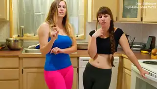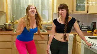 Xev Bellringer - Две красотки с неплохими сиськами сексуально едят бананы на кухне, а затем наклоняются вниз и принимаются кривляться перед веб камерой, изображая из себя госпожей