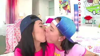 Порно видео Групповуха, Огромный член - Телочка с подружкой снимают шортики и начинают лизать анус. Тут появляется парень, который тоже немного лижет попки девушкам и сует свой хуй им в рот.