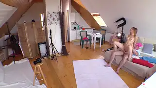 После фотосесси фотограф трахнет модель и обкончает её в постели