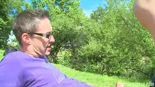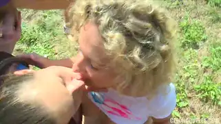 Порно видео Групповуха, - Пикапер со своей сексуальной бабой сняли в городе грудастую блонду с парнем, блонда и подруга пикапера сосали член на лужайке и принимали сперму парней