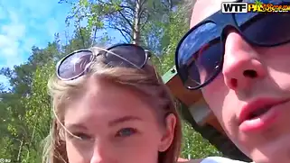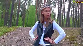 Русская модель Анжелика гуляет по лесу и занимается сексом с другом